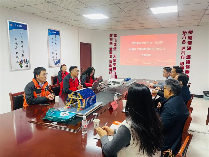 2024年12月10日,河南省人民政府參事、河南省工業(yè)和信息化廳原黨組書記、廳長、河南省紅旗渠工業(yè)創(chuàng)新發(fā)展研究會會長李濤一行到洛陽高飛橋隧機械股份有限公司走訪調(diào)研。公司領(lǐng)導黃高飛、楊玄等陪同調(diào)研,并對領(lǐng)導的到來表示熱烈歡迎。